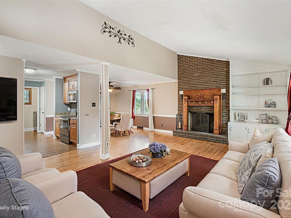 Welcome to quiet country living just minutes away from wonderful downtown Cherryville. This home features NO HOA, a modestly sloped front yard perfect for flower beds, large shade trees, a storage shed, a shaded back yard, a back deck, and a one car garage. Inside you will enjoy the uniqueness of this home! Finishing touches to make it your own is all that it is awaiting!! The kitchen features newer cabinetry and granite countertops, there is a formal dining area that walks out to the deck. The spacious living room features high slanted ceilings, a wood burning fireplace, and built in cabinetry. There is a primary bedroom and full bathroom on the main floor. Upstairs you will find an additional two spacious bedrooms and a full bathroom. The basement features a large open living area, a full bathroom, a wood burning fireplace, a bar area, and walk out to a concrete patio. Move in ready while you add your final touches. This is the perfect home for every buyer! If you're a buyer willing to take on a few repairs to qualify for FHA or VA, inquire with listing agent.