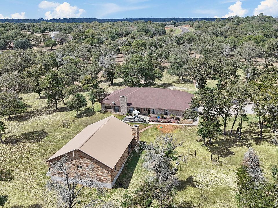 Just 12 minutes from downtown Seguin, this unrestricted property offers a unique opportunity to enjoy the freedom of country living while staying close to the city. The well-maintained 2,419 sq ft main residence features 4 bedrooms, 2.5 bathrooms, a seamless floor plan, and a brand-new HVAC system. The kitchen flows into the living and dining areas, making it ideal for both everyday living and entertaining. A spacious back patio extends off the home and is perfectly positioned to overlook the additional dwelling unit. The newly constructed Barndominium-style ADU adds approximately 1,140 sq ft of additional living space and includes 2 bedrooms, 1 full bathroom, and vaulted ceilings in the living/game room area. It also features its own covered patio with an outdoor kitchen, ideal for guest use or extended family. Situated on a spacious, unrestricted lot, the property offers multiple use options. The current owners have maintained a small farm with various animals, and a seasonal pond is located at the far corner of the land, adding to the natural appeal. Ample storage is available throughout the property, suitable for tools, equipment, or hobby use. An automated gate at the entrance provides both privacy and security. The surrounding neighborhood is quiet and welcoming, with a rural atmosphere. With two separate living structures, outdoor entertaining areas, and flexible land use, this property offers a versatile lifestyle just minutes from Seguin.