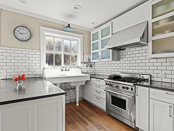 OPEN HOUSE SUNDAY, 5/5 12-2PM. This rare Manchester Colonial has everything: Built in 1890, gut renovated in 2021 to inspire the discerning buyer, and boasting a location at the center of it all. Become a local at Al Ducci's, a block away; dine and shop at Depot 62 moments down Depot Street. You'll come home to this charming Manchester residence with the finest of old-world details and modern luxuries alike. Chef's kitchen includes a farmhouse sink, SubZero refrigerator, walk-in pantry/cappuccino bar, and breakfast counter; the open concept dining area and private patio are lovely for entertaining. The living space flows from kitchen/dining area to the living room with fireplace to the enclosed three-season front porch. Also off the wraparound porch are a mudroom area and spacious laundry room, ready to welcome gardeners and outdoors enthusiasts. The second floor boasts the primary bedroom with en suite bathroom and two bedrooms that share a full, sunny bathroom. A peaceful third floor is configured with two bedrooms or office spaces and a 3/4 bath. In the backyard, a barn acts as a garage and storage space with an attached greenhouse area. Bring your creativity and turn this into an income-generating accessory dwelling unit (ADU), or rental unit. Equinox Mountain sunsets: they're yours, from the back lean-to. Updates include: soapstone kitchen counters, EV charger, new windows, glass shower doors, Ring doorbell, water softener. All measurements approximate.