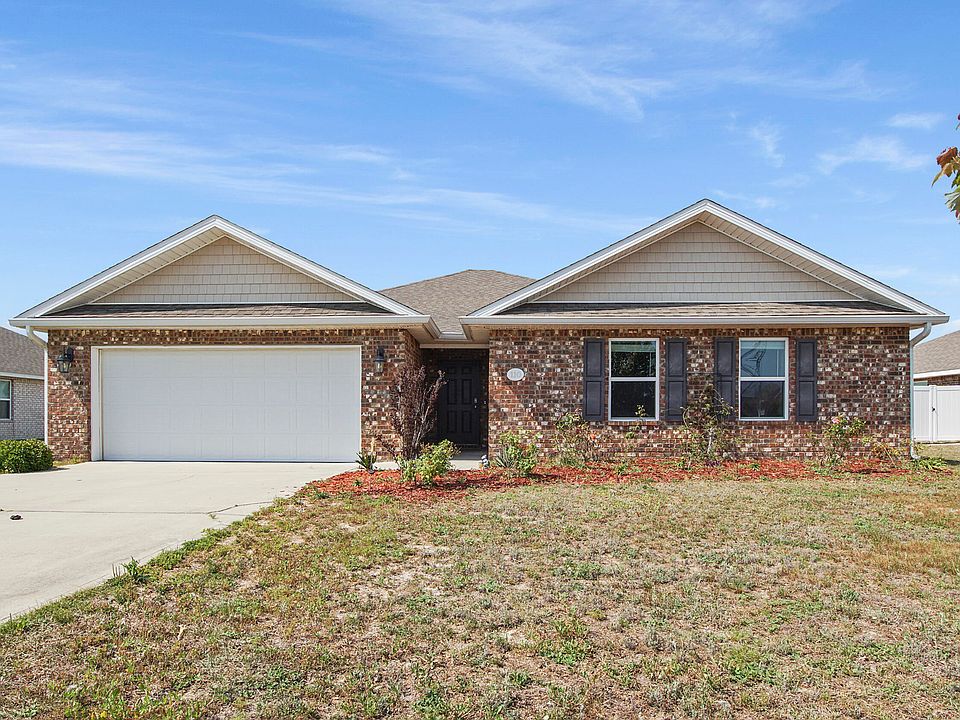 4 Bedroom/ 2 bathroom BRICK home in the gated community of 'Hodges Bayou Plantation'! Located just off CR 2321 and Hwy 77 near Deerpoint Lake, and public boat access. This home showcases an open-concept split floor-plan featuring luxury vinyl plank flooring throughout all common areas. Right of the spacious formal entry way sits the secondary bedrooms, full guest bathroom featuring a tub/shower combo, and laundry room. Large living room featuring recessed lighting overlooks the kitchen; Kitchen features a island/breakfast bar with granite countertops and under-mount sink, tile backsplash, stainless steel appliances, pantry, and eat-in dining area. Master features a walk-in closet, double vanity's, separate shower, and soaker tub. Exterior showcases a fenced backyard, covered back patio and shed.