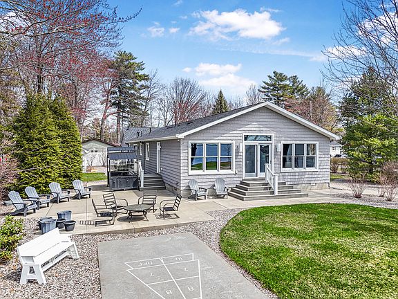 Contemporary Lakefront Oasis on Houghton Lake. Featuring 3 Bedrooms, Den or 4th Bedroom, 2.5 Baths, 2,160 SF. 100′ Waterfront with 2 Guest Cottages. Discover true lakeside luxury in this turnkey, ultra-modern home perfectly situated on 100 feet of Houghton Lake frontage. Thoughtfully designed for low-maintenance living and total privacy. The property boasts a sleek, open floor plan with vaulted great room ceilings and offering panoramic lake views, oak hardwood floors, built-in Klipsch speakers, granite wet bar & coffee station. The gourmet kitchen & baths feature granite counters, glass tile backsplash, large island, upgraded appliances, heated porcelain tile floors, Grohe fixtures, heated towel bar & shower floor in primary suite with all bath floors heate Year-round comfort & efficiency created with quality insulation, Bryant gas furnace, central A/C, humidifier, two 40 gal water heaters, softener, and Generac whole-house generator with warranty. Outdoor entertaining made easy with a 150 foot aluminum dock with platform seating area, gated off-season storage, concrete seawall, sprinkler system, expansive patio with natural-gas gazebo hookup, shuffleboard, horseshoe pits & large brick fire pit. Amenities include exceptional outbuildings with an oversized attached garage well insulated, drywalled, GUV vac, attic storage, gas heater; plus heated utility shed with sink & cabinetry; PLUS two fully updated guest cottages, each offering 2 bedrooms, 1 bath, kitchen & living area, with a 30 amp generator hookup. Exterior security cameras. SEE A FULL LIST OF AMENITIES IN ASSOCIATED DOCS. A MUST SEE TO APPRECIATE. Seller is a licensed real estate agent in the State of Michigan.