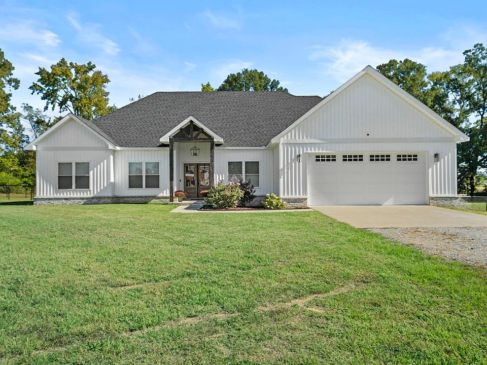 Welcome to this stunning, like-new home built in 2022 that offers the perfect blend of modern, comfort, and country charm. Featuring 4 spacious bedrooms and 2.5 bathrooms, this home provides plenty of room for family and guests. Enjoy open-concept living with stylish finishes throughout. The primary bedroom includes a walk-in closet, access to your back patio space, a double vanity in the master bathroom, with a walk-in shower and soaker tub. Step outside to your covered back patio complete with a cozy outdoor fireplace and 4.0+/- acres of flat, cleared land and a fenced in backyard area that is ready to go! Not to mention it comes with a safe room/storm shelter that is HEATED & COOLED in the garage! Move in ready and meticulously maintained, this home truly has it all! Schedule your showing now, before it's gone.