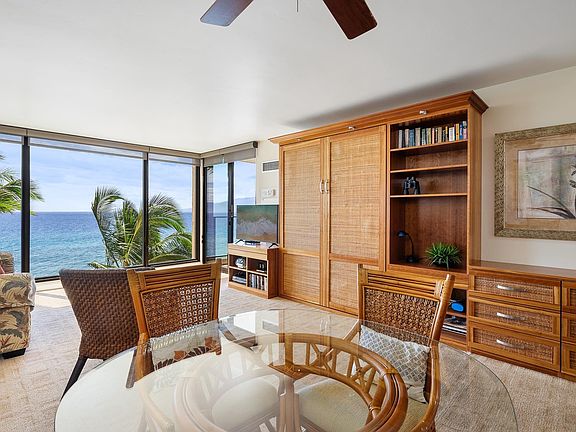Live the true essence of what Maui has to offer. Welcome to the Mahana. This beautifully remodeled one-bedroom, two-bath condominium is located in one of Maui’s premier oceanfront resorts. Perfectly positioned in the heart of Ka?anapali at the north end of world-famous Ka?anapali Beach, this residence showcases uninterrupted ocean views from every room, a rare vantage to enjoy sunsets, seasonal whales, and the soothing rhythm of the waves. The spacious layout features luxury upgrades such as granite countertops, stainless-steel appliances, central A/C, and an in-unit washer/dryer. A thoughtfully designed Murphy bed provides additional guest accommodations while maintaining an open, airy feel. One of the few homes with a second bathroom further enhances the convenience and livability. The Mahana offers a full suite of resort-style amenities: a beachfront pool and spa, BBQ areas, snack shop, and a welcoming lobby with multiple elevators and ample parking. Just steps to Duke’s Restaurant and minutes from Ka?anapali’s championship golf courses, Whaler’s Village, and the trails and coastline of Kapalua, this property blends relaxation with adventure. Maintenance fees include electricity and cable for ease of ownership. Whether lounging on your private lanai, snorkeling right out front, or strolling miles of golden beach, this is oceanfront living at its finest.
