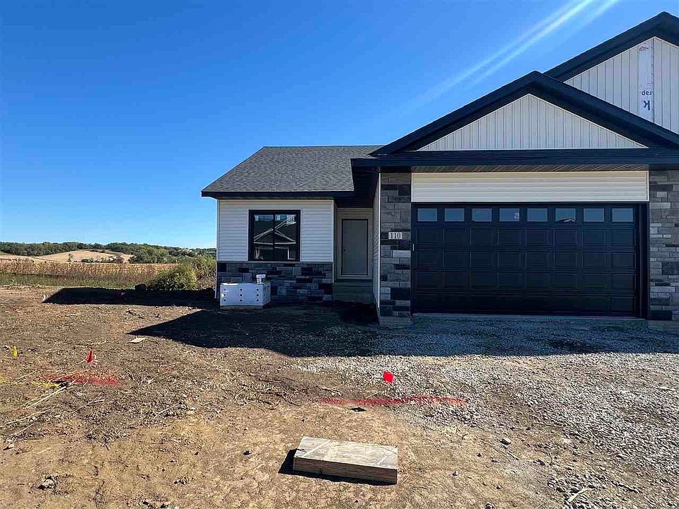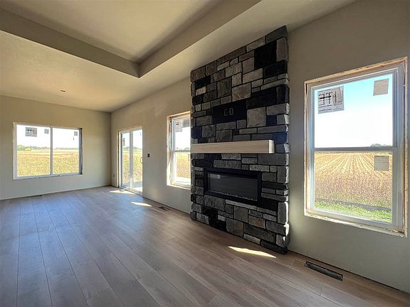 New zero lot with upgrades throughout. Kitchen features white cabinets with tile backsplash, under cabinet lighting, stainless appliances plumbed for a gas or electric range, island and pantry. Great room has a trey ceiling with crown molding, an electric fireplace and opens to the covered deck with stairs off the side down to the yard. White painted trim, white doors, and black hardware throughout. Primary bedroom has a trey ceiling with crown molding, walk-in closet and a bathroom with a tiled shower. 2nd bedroom/office is also on the main floor along with a 2nd bathroom. The finished lower level has daylight windows with a large family room, bedrooms 4 and 5 - one with a walk-in closet, and a full bathroom. 2-car garage. Left side.