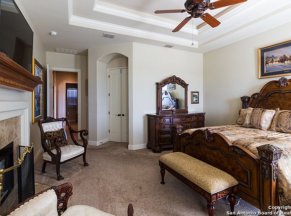 This is truly a WOW house perched high to see a beautiful view of Canyon Lake. Upgrades galore. From the front door Durang double metal door to WiFi throughout, self monitoring alarm system, Pex plumbing maniblock, underground propane tank, Rinnai LP gas tankless water heater, air conditioned storage room off of garage, 12' ceilings, 8' doors, beautiful step up ceiling in master bdrm, oversized 35 X 25 garage and reverse osmosis system. Lovely gourmet kitchen with gas cooktop. Home sits on 1.01 ac