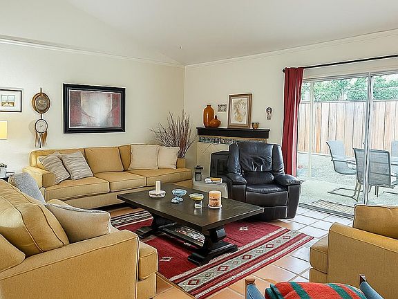 Welcome to 110 La Mancha Way, a beautifully updated end unit townhome offering comfort, privacy, and charm in the heart of Sonoma. This two bedroom, one and a half bath home spans approximately 1,190 square feet and blends warm character rich finishes with thoughtful modern updates. The kitchen features a newly installed granite counter, new sink, and ample storage along with a gas cooktop, microwave, dishwasher, and single oven. The adjoining laundry area includes a washer and dryer for added convenience. The sunken living room showcases terra cotta tile floors, a vaulted ceiling, and sliding doors that open to a peaceful partially covered back patio complete with a fountain, perfect for indoor outdoor living. The primary bedroom offers new engineered wood flooring and its own sliding door to the patio, creating a private retreat. The full bathroom has been tastefully remodeled and the half bath features a classic pedestal sink. Additional highlights include a new electrical panel, front and rear patios, a flagstone entry, and direct backyard access through the attached garage. With one garage space, an additional uncovered parking spot, and close proximity to downtown Sonoma's shops, dining, and wineries, this home combines convenience with the relaxed wine country lifestyle.