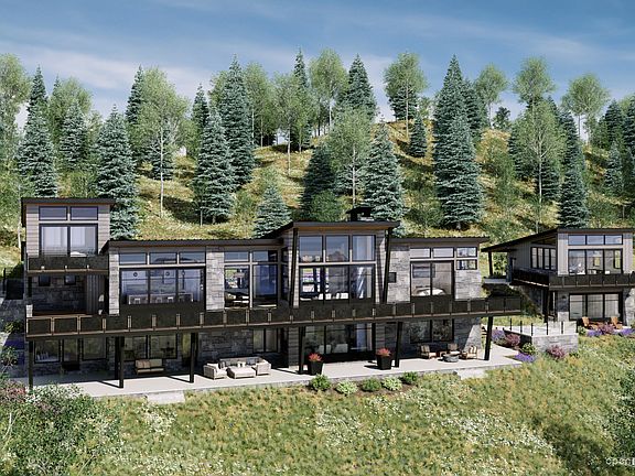 The main residence is 6,655 square feet with six bedrooms and six full baths, 2 1/2 baths including two spacious primary suites with fireplaces, two guest suites, a large bunk room, two additional gas fireplaces, and a media/rec room with wet bar. The open-concept floor plan provides a light, airy design palette. Massive floor to ceiling windows and sliding doors open to the stunning views. Interior features include white oak flooring and a gourmet kitchen complete with luxury appliances including Wolfe gas and infrared stove, Sub Zero dual door fridge, full height Sub Zero wine refrigerator, and waterfall countertops. Custom cabinetry and vanities throughout the home including ski lockers. The massive steel frame wrap around deck with grill and fire pit offers an ideal space for al fresco dining and entertaining with stunning views. Other features include air conditioning and humidification for ultimate comfort. The Buyer may elect to complete a DRB approved Guest Residence for additional cost. The two level sleek contemporary guest residence with 1,415 square feet offers one bedroom and one bathroom, full kitchen and living area. This compound will provide the luxury living, mountain contemporary lifestyle only imagined.