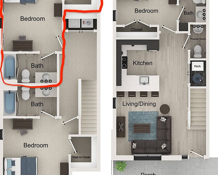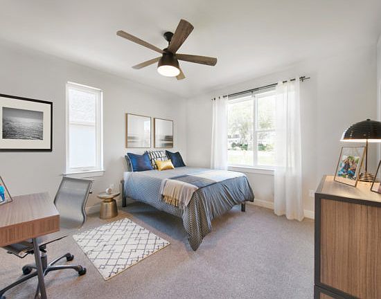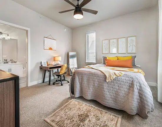Nestled in the Yards of Old State, this charming private 2nd-floor bedroom is a cozy 307 sq. ft. space, complete with a full bathroom and a walk-in closet. You'll find a queen-sized bed, under-bed storage, and a desk to keep you organized. The bedroom is carpeted, while the bathroom features tile. For your convenience, a shared washer and dryer are just outside the bedroom. The common area boasts a full kitchen with bar seating, and the living room is a delightful L-shaped sofa with a coffee table and a smart large-screen TV.