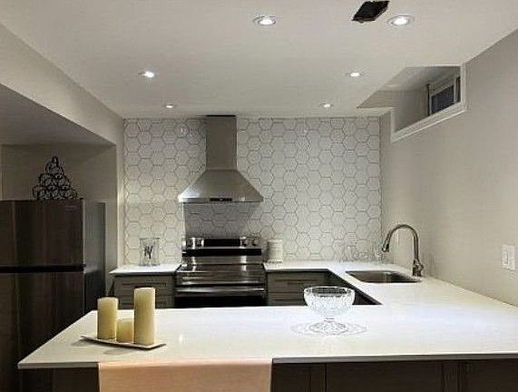 1 Bedroom Basement apartment with modern finishes and a bright open concept layout. This space offers warm and cozy environment with designer finishes. This unit is semi furnished and tastefully decorated. All inclusive utilities. 1 Driveway Parking Spot included. The place is suitable for a couple or a single female. Don't miss this opportunity.
