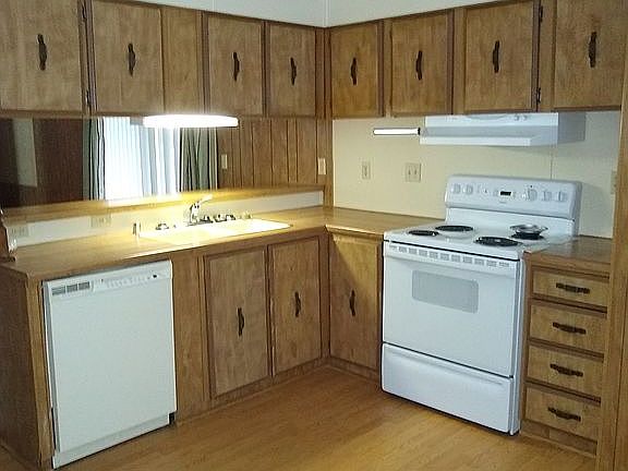 This is a two bedroom one bath mobile home. Lots of windows for natural light, a front covered porch and a much larger covered back porch that is great in the winter to access the covered carport in the rear. Bath has a large soaker tub with a separate shower stall. Home comes with all the appliances and A/C. Private well on property as well.