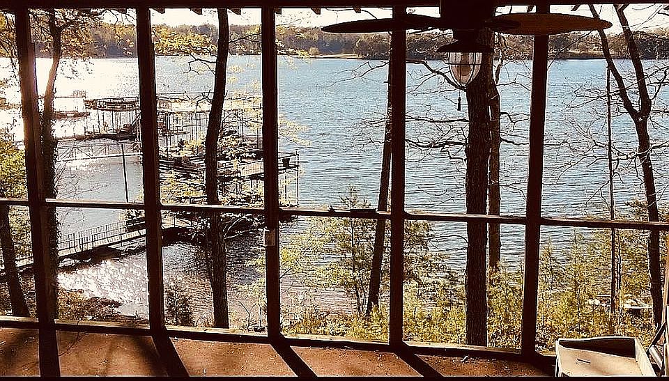 Lake Cabin for sale with huge panoramic view visible from kitchen, living room and large screened in porch. Lakefront sitting on main channel with deep water. Permit for 32 x 32 boat dock. Enjoy yearly fireworks from your screened porch that sits directly across the lake from the display. Cruise your boat, pontoon, canoe or kayak over to a county park with walking trails, tennis courts and multisport ballfields. There is not another home with this lake view for this low price. current driveway crosses adjacent lot but new drive to be put in that ties directly with current drive/carport. Closet is fully lined with cedar, Home currently occupied by a tenant and only view by appointment.