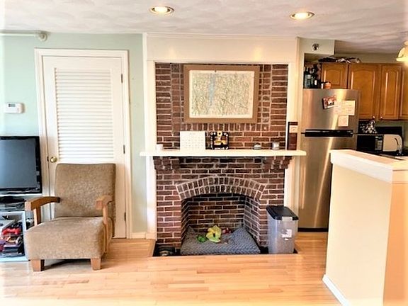 Private entrance, bi-level condo in the heart of Dedham Square. This home features 2 floors of living space, with baths on both floors. The main level consists of the family room w/fireplace, galley kitchen, and a separate dining area. Directly off of the family room are sliders which lead directly to your private garden patio. There are gleaming hardwood floors. Upstairs, there is a generous sized bedroom with a Master bath and multiple closets. More outdoors space on this level, with a small deck just off the bedroom hallway for stepping out and enjoying the fresh air. There is a laundry in the unit, and additional deeded storage in the common area. Central air for those soon to be hot summer nights. There is parking in the rear, and pets are okay. The home is just steps to the restaurant & shops of Dedham Square, and 1 mile from the Commuter Rail into Boston. Truly a hidden gem!