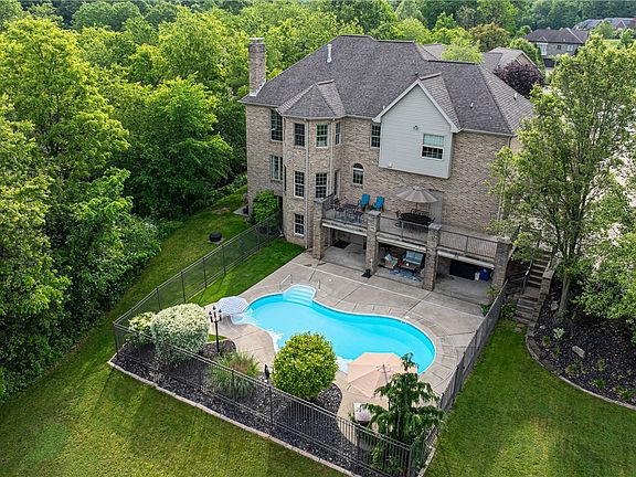Stunning Custom built (4 bedroom/4.5 bath) ALL Brick home on a cul de sac with over an acre of land*Beautifully manicured yard* Level concrete driveway to a 3 car garage* Gorgeous built in heated pool for you to enjoy this summer! Step into the 2 story Entry w/ceramic flooring. Impressive Family room w/18 ft stone fireplace & walls of windows..open to the Gourmet Kitchen w/huge island w/seating, granite countertops, dbl ovens & eat in area~1st floor has a formal dining room & office w/double doors (9 ft ceilings) Upper level has an amazing Master Suite w/light & bright sitting area & fireplace, newer huge spa-like bathroom & walk in closet! 3 additional spacious bedrooms & laundry room **Lower level is a dream gameroom w/full bath,bar,wine storage,fireplace & doors to patio & pool! flex space for exercise room or playroom~Amazing tree lined yard for privacy,2 sheds* close to schools, restaurants & shopping. Easy commute to PGH airport & downtown PGH! One year home warranty included!