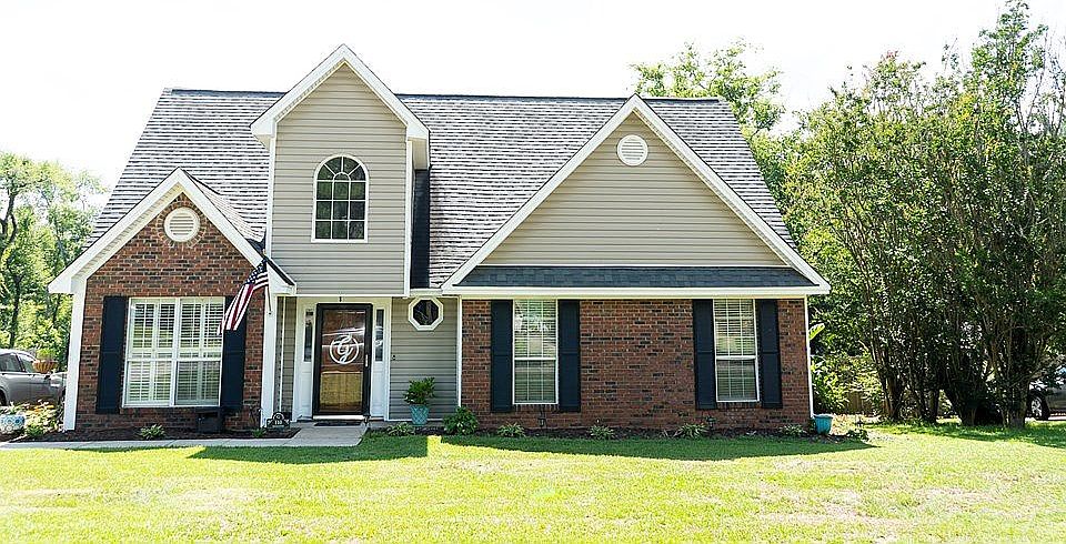 WELCOME HOME! This Lee County 3 Bedroom, 2.5 home is cute as can be and you won't have to do a thing! (1) Updated open Kitchen w/ granite countertops, spacious breakfast area, tile backsplash, pantry and kitchen appliances included! (2) Open Floor Plan (3) Welcoming 2 story foyer entry & 2 Story Great Room makes the home feel very light and airy! The Great Room also features a handsome fireplace! (4) Separate Dining Room or Home Office (this was once used as a 4th bedroom) (5) Updated Flooring & Lighting (6) Half Bath for Guest (7) Downstairs Primary Suite w/ on suite bath, 2 sinks, walk-in closet and separate WC/Shower room, jetted tub shower combo + UPDATED Tile Flooring! WOW! (8) Laundry Room just off the Master (9) Upstairs are 2 guest bedrooms and an updated hall bath! (10) Outside you will find Low Maintainece Vinyl Exterior, fenced yard, storage building and an AWESOME back covered patio! +Updated Smart Thermostat, Walk-in attic storage, updated Laminate flooring, new tile, fresh neutral paint and minutes to Lee County's schools, shopping and Publix! Call today
