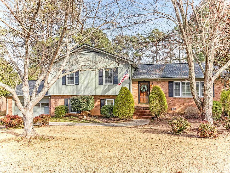 If you're looking for something unique and not just another cookie-cutter home, yet want quality construction, modern upgrades, and an unbeatable location just 10 minutes from downtown Greenville, this is the one for you. Nestled on a picturesque 0.79-acre lot, this tri-level home offers the perfect blend of privacy, space, and convenience with top-rated schools and nearby dining and shopping. This home is ideal for any generation thanks to its versatile floor plan. Upon entering, you’ll be welcomed by a spacious foyer that leads to the mezzanine level, with a spacious open living area and refreshed kitchen featuring quartz countertops and herringbone tile backsplash. Enjoy the bar/buffet, generous dining room, or step out to the tiered deck(built in 2023)-perfect for dining and entertaining. Downstairs, you'll find the lower-level suite, which includes a cozy flex space with gas fireplace and access to the lower deck with views of the park-like backyard. This level also features a full bath with granite countertops, laundry, and a versatile 4th bedroom. This space is perfect for an in-law suite, home office, or secondary primary suite. Upstairs, the large primary bedroom offers plenty of space and a full bath. Two additional bedrooms and another full bath are also located on this level.Located in the established Wellington Green Community, owners will enjoy the community green space and have the option to join the neighborhood pool. Additional upgrades include new architectural roof (2025) and upgraded electrical panel.