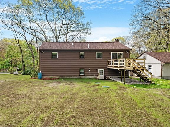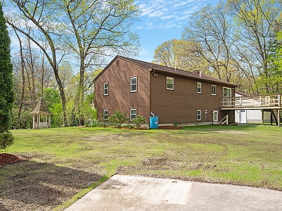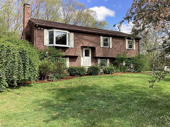 Opportunity Knocks! You deserve to enjoy this delightful 3 bed, 2 bath Raised Ranch nestled on 2.07 wooded acres. Features include a stainless steel applianced kitchen, dining area with sliders to Trex decking, hardwood floors and a partially finished basement. The basement is a walkout and also has an Office, full Bathroom and Family Room with a sink, cabinets and built in bookcases. Other amenities include a water treatment system, an adorable Gazebo, shed and outbuilding. The roof shingles are only 5 years old and town water is available in the street. The oversized 2 car detached garage is a handy persons dream with its propane furnace, full insulation, sheetrock, workshop and attic. This home also offers a convenient location only minutes from the commuter rail to South Station and Route 495. Also, check out the virtual tour!
