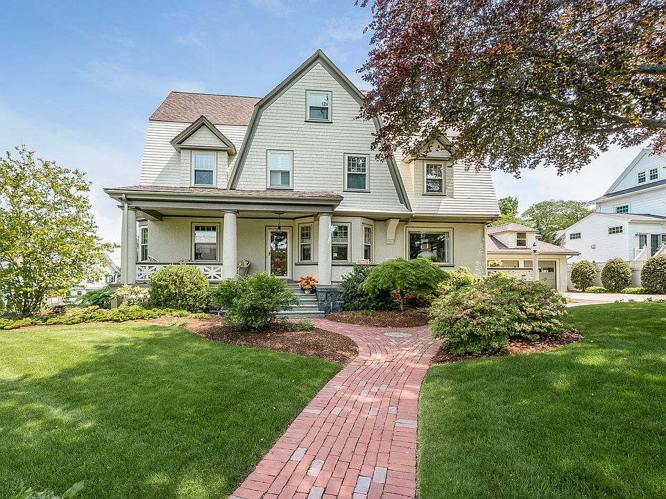 This Spectacular Gambrel style home impressively sits atop President's Hill, one of Quincy's premier neighborhoods and just steps from Quincy Center Station. The home offers a beautifully designed kitchen with Thermador, Wolf and Electrolux appliances, upgraded tile and granite bathrooms, central air and recessed lighting all while maintaining it's antique charm with leaded glass windows, original Mahogany wainscoting and coffered ceilings throughout the main level. Four bedrooms including the master with a generous walk-in closet and double vanity en suite, 3 full and 2 half baths, finished lower level with over-sized laundry room equipped with a chute from upper floors and third level family room for extra entertaining space. Incredible landscaping with an immense beech tree and irrigation system. Detached two car garage to keep your vehicles out of the elements. Come check out this amazing property and neighborhood! Private showings only.