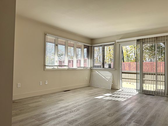 Enjoy privacy and serenity in this beautifully remodeled first floor ranch. The kitchen offers a gorgeous white shaker style cabinet with Quartz counters and all new appliances. There is an eating area overlooking the courtyard and living room with sliders overlooking the new deck. The primary bedroom has its own bathroom with double sinks, two walk in closets and situated in a private setting surrounded by trees. The two additional bedrooms share a second full bathroom with double sinks on the opposite side of the apartment. Parking included, laundry in unit and available for immediate occupancy!