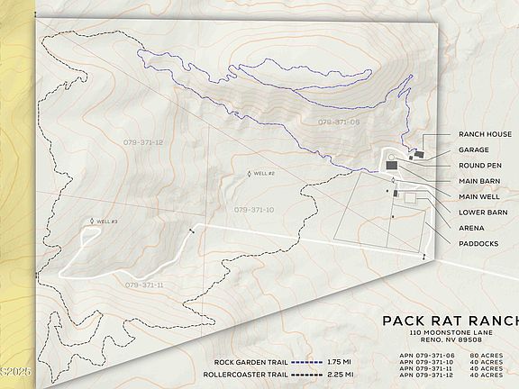 A once-in-a-lifetime 200-acre legacy ranch in Red Rock, where rugged wilderness meets refined Western living. This private holding captures the essence of Nevada's open range—rolling hills, panoramic vistas, and miles of trails that begin right off your back porch. Comprising four contiguous parcels, the property's western boundary adjoins over 50,000 acres of BLM land, offering direct and unrestricted access to the Sand Hills and Peterson Wilderness—a vast and untamed expanse ideal for trail riding, hiking, and exploring Nevada's backcountry in pure solitude. The ranch-style residence crowns an elevated ridge with sweeping, cinematic views in every direction. Completely reimagined in 2016, the home blends rustic craftsmanship with understated luxury—featuring Aries Brothers cabinetry, leathered granite counters, Wolf, Miele and Zephyr appliances, a true cast iron clawfoot tub, and real hardwood flooring throughout. Custom built-ins accent each room, and a Jotul wood-burning fireplace with a reclaimed timber mantle from the Davis Creek Ranch anchor the great room, while every window frames an ever-changing visual masterpiece - Sand Hills and Peterson Mountain Wilderness, the Dog Skins and Virginia Peak, Fred's Mountain, and even down to Sonora Pass along the sweeping Eastern Sierra front - almost 120 miles! The equestrian compound is purpose-built for those who ride, train, or simply live the lifestyle. A custom six-stall cedar barn showcases handcrafted ironwork designed for durability and beauty. A secondary barn provides two additional stalls, hay and equipment storage, and a wash rack. The professional-grade 90' x 90' arena and round pen—each built with reclaimed oil field piping and deep concrete footers—are designed to handle serious use. Two custom single-track, multi-use trails of 4.5 miles wind through the property. Rollercoaster trail ascends to the property summit with stunning views back onto the home and barns and up into the exquisite rocks of the Sand Hills. Rock Garden trail explores quartz-laced, wind-carved boulders, and summits the iconic property mesa with 360-degree views of colorful mountains and sweeping valleys unlike anywhere else in Northern Nevada. For the discerning buyer seeking adventure, privacy, majestic scenery, and connection to the land, this property offers it all—breathtaking sunrises and Alpen-glow sunsets, crisp snow-capped horizons, and endless adventure by horseback, mountain bike, on foot or on side-by-side. Just 20 minutes from town, yet it feels a world apart—an authentic Nevada sanctuary, truly one of a kind. 4 Parcel IDs : 079-371-06, 079-371-10, 079-371-11, 079-371-12