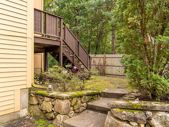 Nestled among the trees yet convenient to everything - this 2-bed, 1.5 bath condo epitomizes modern comfort and tranquility. Newly installed windows and slider flood the interior with natural light, offering serene views of lush surroundings from inside, or outside from the large deck. An open-concept layout connects the living and dining areas seamlessly - ideal for entertaining - and the wood burning fireplace is a bonus. A well-appointed and efficient kitchen/dining room area boasts newer stainless steel appliances and ample storage and opens to the deck. The main bedroom features a spacious double closet with a closet system for prime organization The full bath is spacious while a versatile second bedroom and adds to to the flexibility of the home. Downstairs there is a perfect office space with a large window. The location is perfect as well -close to shopping and restaurants and minutes from 2 T stations and all commuter routes - yet peaceful and quiet. Don't miss this.