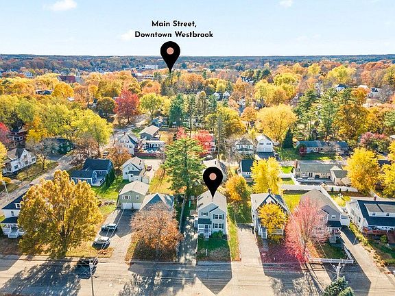 This charming 3-bedroom, 1.5-bath Colonial is nestled in a tree-lined neighborhood just moments from downtown Westbrook. The first floor offers an open layout filled with natural light, featuring hardwood floors throughout, a modern kitchen with stainless steel appliances, backsplash, and a center island. The dining area is accented by an elegant, warm chandelier, and the large living room is ideal for gathering around the TV or a good book. Upstairs, you'll find three bedrooms, including a primary bedroom with direct access to the shared full bath, and a convenient second-floor laundry. Enjoy the private backyard and patio—perfect for relaxing or entertaining on crisp fall evenings. A large, unfinished basement provides excellent storage, a workout area, or a future finished space.