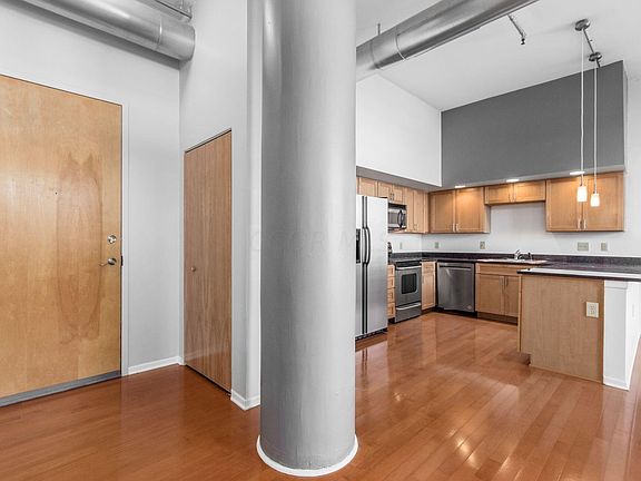 Experience the best of downtown living in this stylish 1 bedroom, 1 bath condo! Nestled in the heart of the city, you're just steps away from vibrant restaurants, trendy bars, eclectic shopping, lively festivals, and more. The condo boasts an updated bathroom (2020) and a new HVAC system (2023). Enjoy the convenience of a basement storage unit, assigned off-street parking (gated for security), an on-site fitness center, and a shared rooftop patio with stunning skyline views. Embrace loft living with an open floor plan, wood floors, large windows, high ceilings, and an in-unit washer and dryer. This is urban living at its finest! Rentals allowed (30+ days minimum). Condo fee includes high-speed internet, cable, water/sewer and trash.