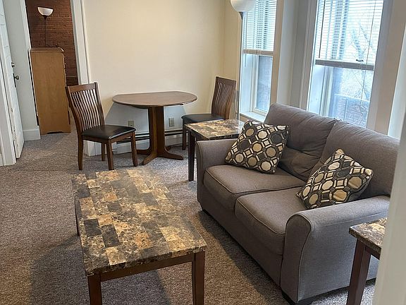 Furnished, spacious 3 bedroom apartment with 1 bathroom, exposed brick wall, secure building. Tenant pays electric. Includes heat, cooking gas, water/sewer, internet & trash removal. No pets, no smoking. Coin-op on premises. UNIT AMENITIES Cable, Heat - gas, Laundry room / hookups, Refrigerator, Stove and oven