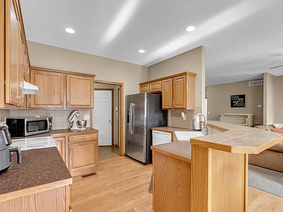 NEW PRICE--Take a second look! Enjoy the ease of patio home living in this charming 3-bedroom, 3-bath beauty located in a quiet, well-maintained neighborhood. The HOA takes care of trash, snow removal, and lawn service—leaving you more time to relax and enjoy life! The main level offers an open, inviting layout with hardwood floors in the dining and kitchen, all kitchen appliances included, and a main-floor laundry for convenience. The living room features a cozy gas fireplace and opens to a brand new wood deck off the primary suite, which boasts a double vanity, separate tub and shower, and a walk-in closet. The finished view-out basement adds incredible living space with a large family room, game area, third bedroom, full bath, and an oversized storage room. Neighborhood perks include a playground, basketball court, and swimming pool just steps from your front door! Andover schools, Wichita taxes, 7-year old roof, and 6 year old HVAC system! This move-in ready patio home offers low-maintenance living without sacrificing space or comfort!