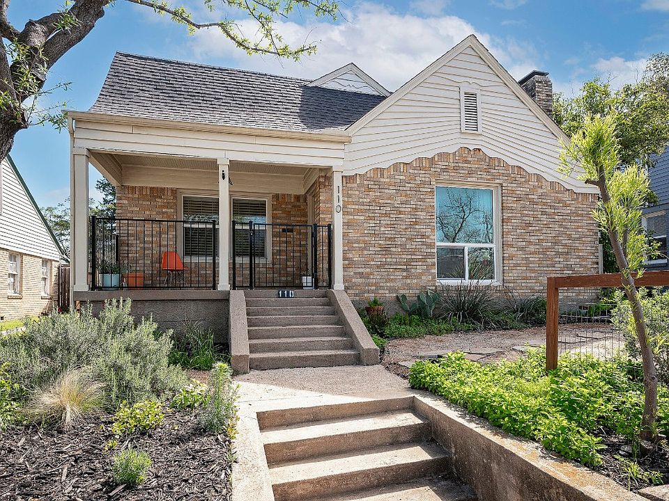 Step into this charming 1940s Tudor-style 3 BR located in the heart of North Oak Cliff. Just minutes from the Bishop Arts District, this home offers the perfect blend of original mid-century charm & modern updates. Large living room has cozy white painted brick fireplace & opens up to dining room with unique arched doorway. Updated kitchen has granite counters, light gray painted cabinetry, subway backsplash & gas range. Updated bathroom has original period tile flooring, reglazed tub & wall tile, plus new fixtures. Beautiful original refinished hardwood flooring thru-out. Light & bright with all new windows. Energy efficient with upgraded HVAC condenser, Nest thermostat & additional insulation in attic. Tons of attic space. 2 sets of French doors lead to the spacious covered patio with beadboard ceiling…perfect for entertaining. Fenced back yard has native low-maintenance pollinator garden & additional extended patio. Reconfigured driveway allows for ample parking & turnaround space.