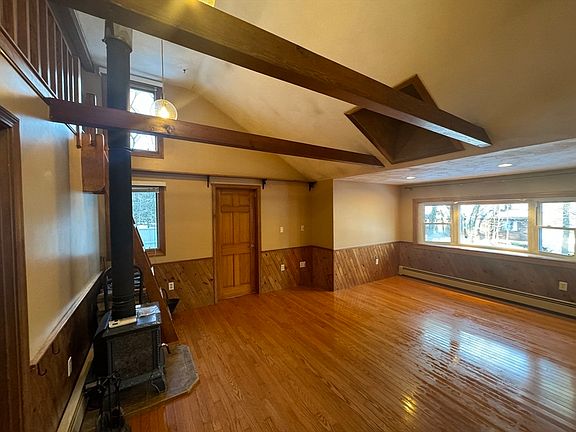 Charming and full of character, this 3-bedroom single-family home in Stow offers a warm and inviting atmosphere with beautiful beamed vaulted ceilings, a cozy wood stove, and gleaming hardwood floors. The spacious main bedroom features a slider leading to a private backyard, perfect for enjoying nature. The property boasts lovely gardens and backs up to conservation land, providing a peaceful retreat. Additional highlights include a welcoming living room with an oversized window and loft, a full basement with laundry and ample storage, and one-car garage access. 2 bedrooms have mini splits for AC. Sorry, no pets allowed. A must-see home!