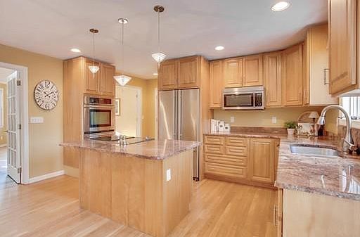 - Kit Dscrp: Flooring - Hardwood, Countertops - Stone/Granite/Solid, Kitchen Island, Stainless Steel Appliances, Recessed Lighting, Slider, Exterior Access
