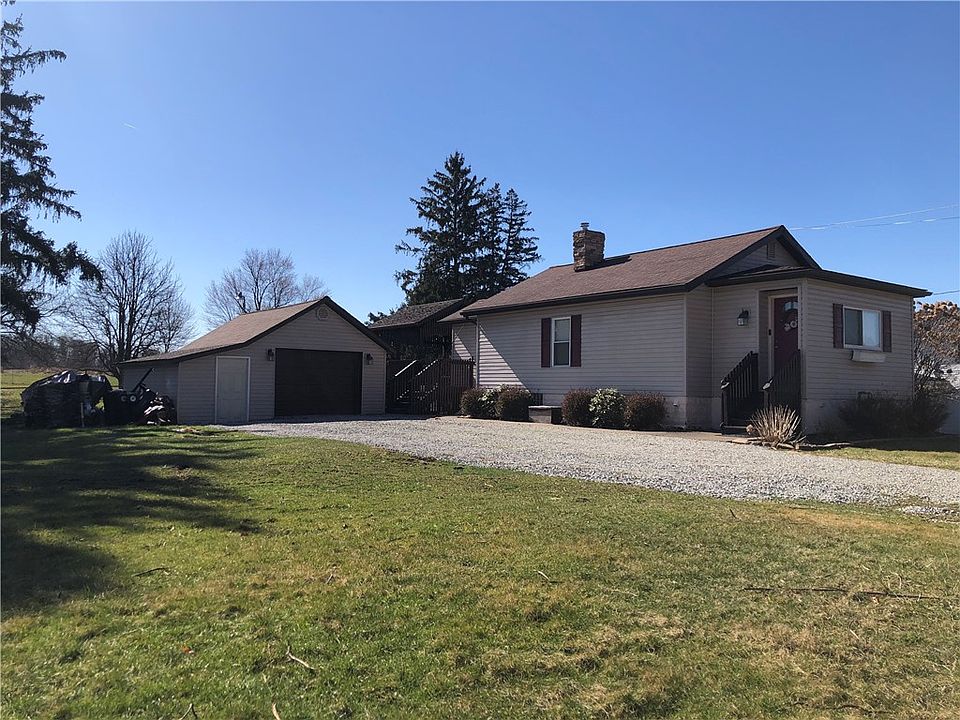 This pretty home set on over an acre is move in ready and oh so very nice, great color pallet, clean and nicely laid out, including full appliance package in the kitchen which also has lots of cupboards and pantry, also included is the washer and dryer and basement freezer! Featuring attractive and roomy bedrooms, one featuring a beautiful hand painted woodsy scene, office/play areas, and a wood burning stove and lots of storage potential in the basement, which has been professionally waterproofed! Roof, windows and siding installed 2011. Furnace and AC installed in 2014. Over an acre, large, fenced area offers loads of options, there is a patio/picnic area with firepit, several good fruit trees, and a good sized covered back deck overlooks this lovely level lot. There is an oversized garage with cement floor and workshop area also included. Convenient to Cal U and RT 43 Turnpike, also RTs 40 and 166. Close drive to Uniontown, Dr's dining, shopping!