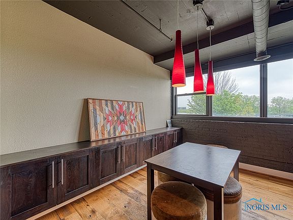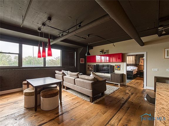 Welcome to downtown Toledo! This loft comes completely furnished with that modern industrial style. Completely updated throughout with one of my favorites is the repurposed 3/4" barn wood flooring. Custom cabinets and beautiful tile work throughout both bathrooms. Top of the line appliances which is a sub zero fridge and Viking stove. The rooftop has amazing views where you can entertain. Has a gas grill and a bar to enjoy. Extremely short distance to fun bars, restaurants, 5/3 Field and Parks. Two indoor parking spots and extra storage available.