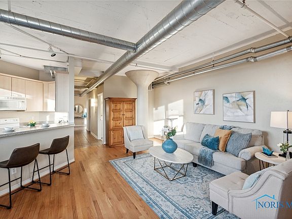 Welcome to your new home in the heart of downtown with Amazing Panoramic views of the Maumee River, Skyline & Spectacular Bridges. Spacious open floor plan with exposed brick accent walls throughout. Walk to Fifth Third Field, Resturants.& Metropark with off-leash dog park. Enjoy Entertaining & watching fireworks on the Amazing Roof Top Deck with gas grill & enclosed bar area/half bath, Features secure building, excercise room, dock for small boat/kayaking, 2 parking spaces/heated garage with storage unit. Seller is offering $5000 towards buyers closing costs OR up to 3% for 2-1 rate buydown.