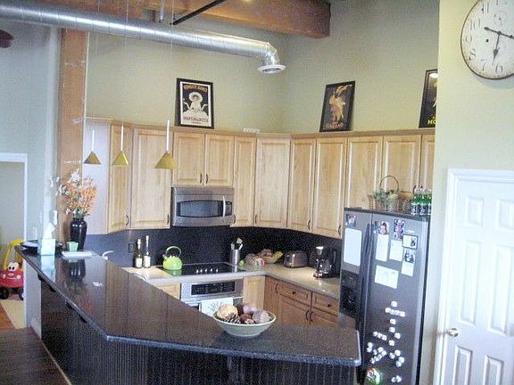 Downtown living! Beautiful river view from this luxurious top floor condo. 2 BR, 2 bath w/den that could be 3rd BR. Mstr bath w/dbl sinks & laundry in condo. Kitchen w/pantry, stainless appliances, wood cabinets, & slate flr. Open family w/wet bar & high ceilings. Secured entry & parking. Extras including exercise Rm, magnificent rooftop deck w/awesome view, gas grill and party room. A must see! Lease, lease option,lease purchase available.