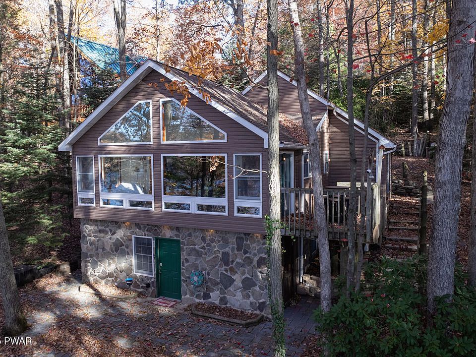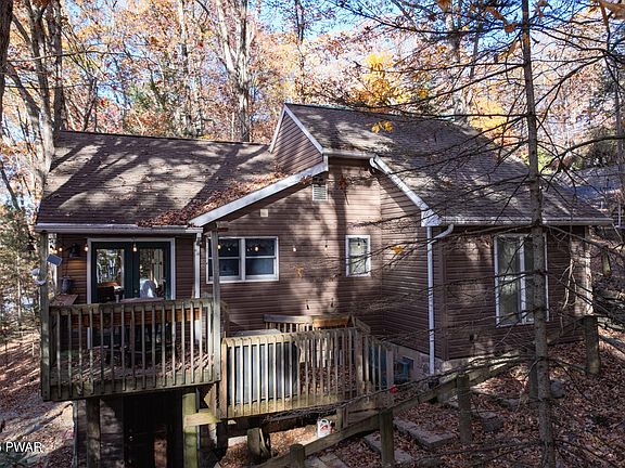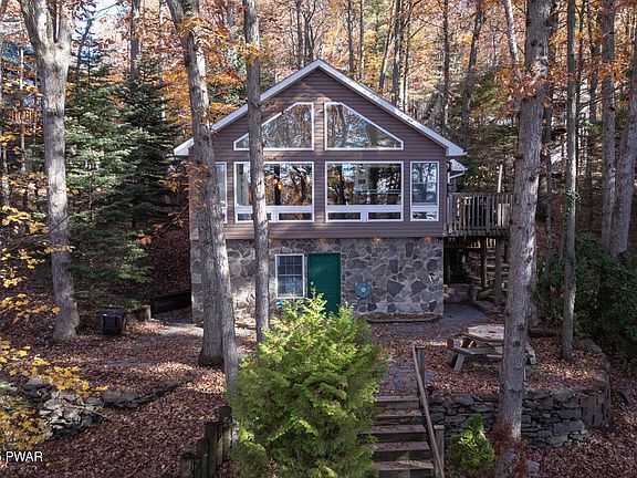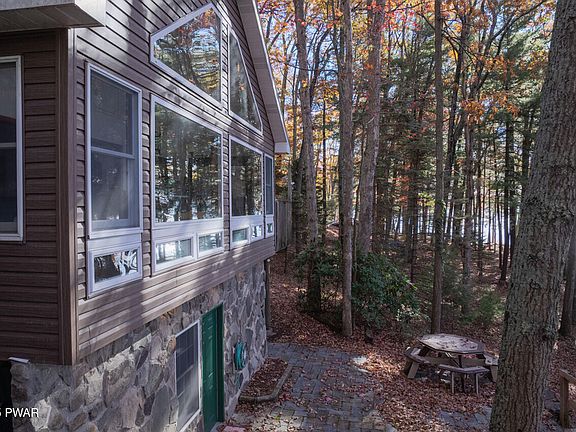 Lake Wallenpaupack Lakefront, 3 Bedrooms, 2 Bathrooms, plus lower level shower/sink, walk out basement. Oversized living room windows provide year round lakeviews, gentle walk down to the lake, boat dock included, firepit, large brick paver patio, no community or HOA to deal with, short term rentals permitted per Township guidelines.
