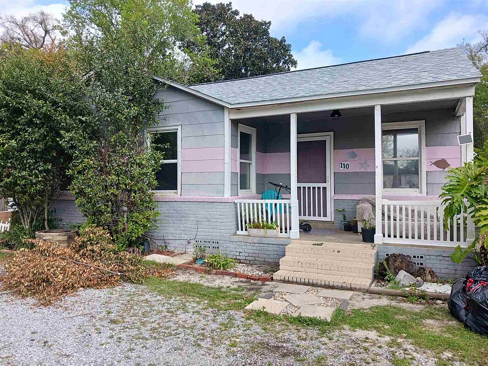 Great chance to get into Navy Point well below $200K ! Cozy 1940's cottage located just blocks from public boat ramp and access to waterfront park that surrounds the neighborhood. 2.25 mile paved pedestrian/bike/dog trail meanders along bayou's edge throughout the park with secluded beaches and benches for viewing wildlife and incredible sunrises and sunsets. Just outside main gate NAS Pensacola and easy drive to downtown. New roof in 2022 and updated windows. original hardwood floors throughout. Featuring bedrooms larger than typical NP homes. Currently on septic system, but connection to public sewer is available. Energy efficient heatpump heat/cool and tankless, on-demand gas water heater. This property is in need of renovation throughout, but is an excellent opportunity to live in an ever-popular neighborhood and put your personal touches on this cute home. Information deemed reliable but not guaranteed. All features/measurements subject to verification by buyer. (updated photos measurements to be added soon).