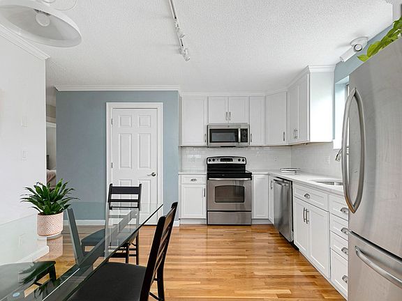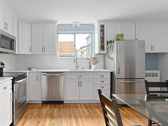 Beautifully updated two-bedroom condo in booming East Somerville. This spacious unit features an open floor plan with hardwood floors throughout. The modern eat-in kitchen has ample cabinet and counter space and room for a full-sized dining table, and was recently updated with new cabinetry, white quartz countertops, and stainless steel appliances. Both bedrooms are sizable with double closets. The bathroom was completely updated with a tile surround, granite-topped vanity, and wainscoting. The unit comes with one off-street parking space and private storage and laundry in the basement. 110 Pearl Street is just blocks from that special, renovated stretch of Broadway, with its unique flavor and thriving local restaurants and businesses. Bike lanes, public transportation (including Sullivan Square and the upcoming East Somerville Green Line station), and easy access to I93 make this a commuter's dream. The building is professionally managed, and condo fees include heat and hot water.