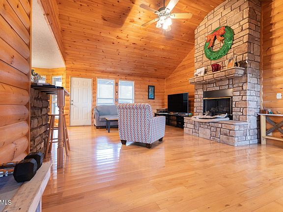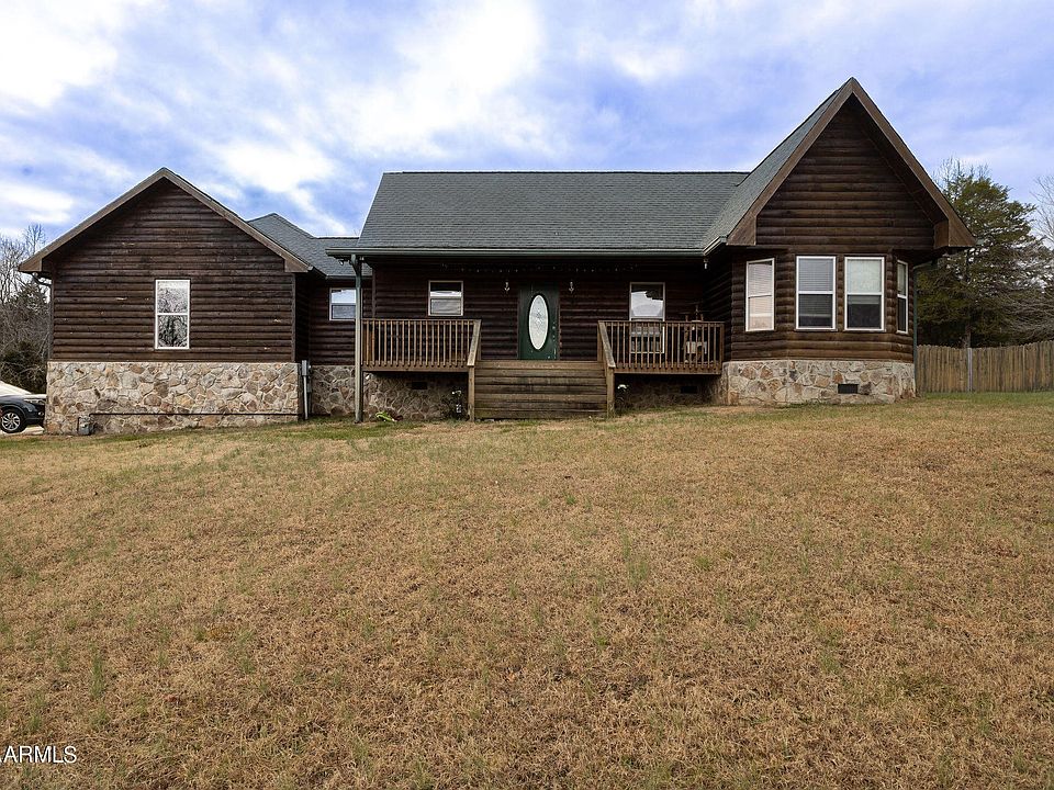 Stunning log home on acreage. Dramatic vaulted ceiling with gas fireplace. Split bedrooms. Granite countertops in the kitchen. Open floor plan. Large covered front porch and oversized back deck. Pack your bags. New year new home