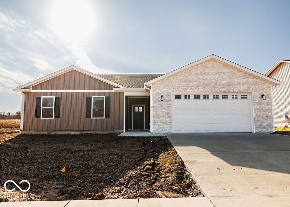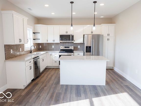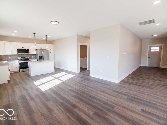 Tucked inside the growing Four Oaks Subdivision, 110 Pin Oak Road feels like home the moment you walk through the door. The Spruce floor plan offers just the right amount of space-1,847 square feet with three bedrooms and two and a half baths-all designed around an open, comfortable layout. Step through the entryway into a spacious 16x22 living room that flows naturally into the dining area and then the kitchen. The kitchen stands out with a large island, quartz countertops, modern solid wood cabinetry, and a stylish tiled backsplash-a space that's as functional as it is beautiful. Just off the kitchen hallway, you'll find the laundry room and half bath, along with access to the attached two-car garage. The primary suite offers a peaceful retreat with a walk-in shower, dual-sink vanity, and a walk-in closet. Down the hall are two additional bedrooms and a full bath with a tub/shower combo. Every detail is ready for you to move right in, with all appliances included. Step outside and enjoy what makes Four Oaks special-a walking trail around a private lake, a dog park, and a community clubhouse-all just minutes from Ellettsville, Bloomington, and downtown Spencer.
