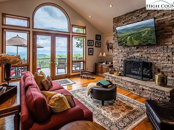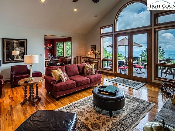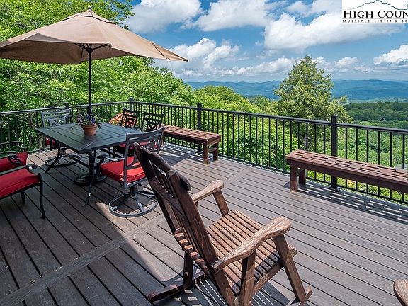CUSTOM MTN RETREAT with Long Range Layered VIEWS. Offered Fully Furnished, Turn Key and ready to enjoy Now! Breath taking Vista VIEWS abound in this 5 Bedroom 4.5 bath beautifully appointed mountain home with an elevation of: 4,462 feet. Ideally suited for year round living or an excellent SHORT TERM RENTAL for multiple families. Everyone can enjoy all the Mtn has to offer in this magnificent home that is very close to the Beech Mtn Club Campuses, Ski Beech Resort & the Town Recreation Park. All you need to bring is your toothbrush, skis, & racquets to this 4,350 sq.ft. 3 level retreat. Complete with level entry, large circular drive, oversized 2 car and cart garage, road to road 1/2 acre lot with lush landscaping. Enjoy hosting from the open concept kitchen & huge dining room with Mtn Views that seamlessly connects to the stunning great room and new TREX Decks. Floor to ceiling windows & massive custom stone fireplace complete the great room. The main level also includes the generous primary suite with panoramic views, massive en suite bath w/walk in shower, Jacuzzi Tub and huge walk in closet. VIRTUAL TOUR & FLOORPLANS ATTACHED. Transferable BEECH MTN CLUB MEMBERSHIP.