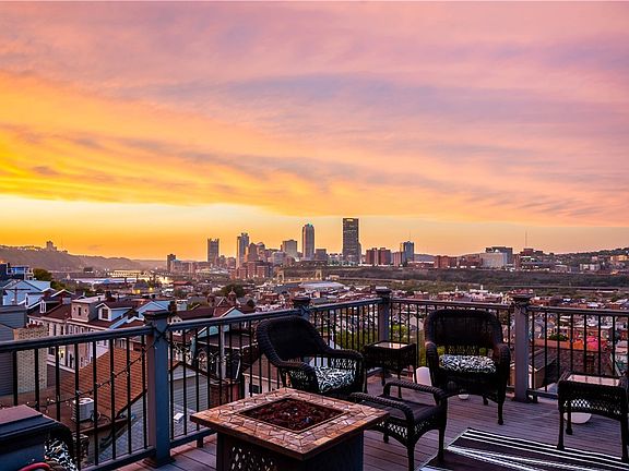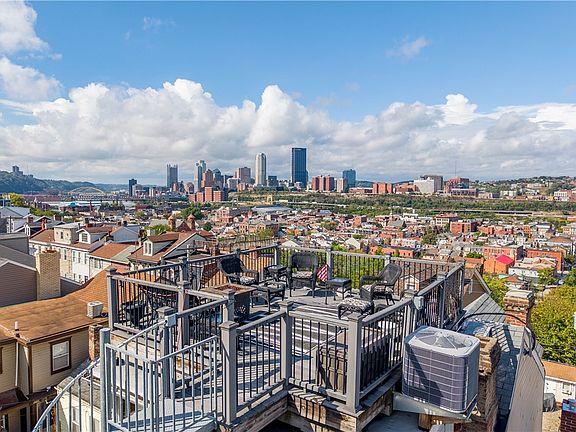 Perched high above the city, this one of a kind residence offers jaw dropping views of Pittsburgh's iconic skyline. Overflowing w/ character, the old world craftsmanship unfolds into modern conveniences highlighting soaring ceilings, exquisite moldings, expansive archways, transom topped doorways, rustic hardwood rich w/ Victorian architecture & appointments. The private owner's suite features an en-suite bathroom w/ glass enclosed tile shower & well equipped walk in dressing room. Guest room/office & charming bath w/ clawfoot tub complete the 2nd level. Ideal for entertaining & unlike anything you'll find in the city, the third floor gathering room is a true showstopper featuring a custom crafted Irish pub inspired wet bar. Four distinctive outdoor spaces create an unparalleled setting for entertaining, each revealing a breathtaking new perspective of the city skyline. Truly a rare opportunity to own a home where legacy is preserved, beauty is redefined, & history is given new life.