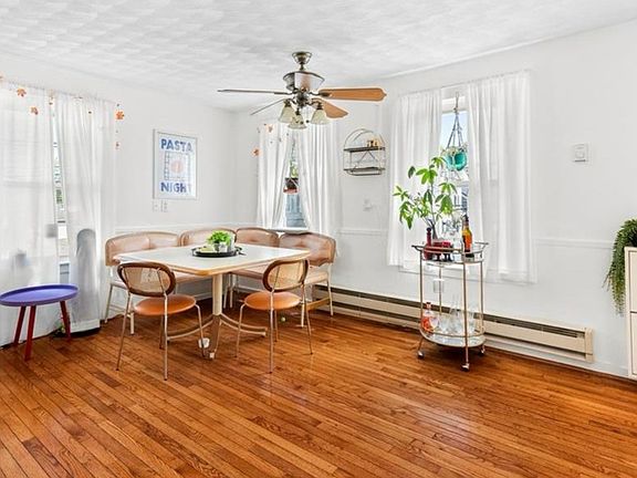 This bright, inviting spacious 1-bedroom apartment offers a welcoming eat-in kitchen with a ceiling fan, living area, and a bathroom. Second Floor apartment in a three family. Gleaming hardwood floors throughout. Master Bedroom with recessed lighting and a large closet.