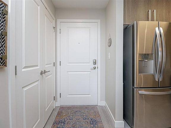 Beautiful balconyOpen concept layoutCustom backsplashQuartz waterfall countertopClassy walnut cabinets