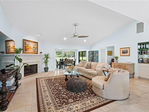 ''Golfer's Choice''! This 3BD/3BA charming home directly on beautiful golf course in exceptional picturesque Bent Pine neighborhood sits across the street from your semi-private pool. Newer tile roof (2017). Feel the fairway breezes from lovely screened porch as birds chirp in the distance. Custom interior boasts new A/C 2024, plumbing has all been replaced, soaring cathedral ceilings, fireplace, flowing one level light, bright, airy floor plan, wet bar, updated kitchen w/breakfast area, new washer and dishwasher, plantation shutters, dining room, oversized side-entry garage. Landscaping + lawn care inc in maintenance. Tennis Courts. Golf memberships available