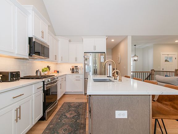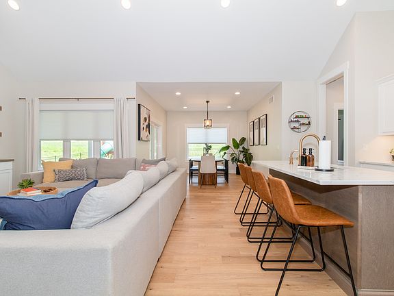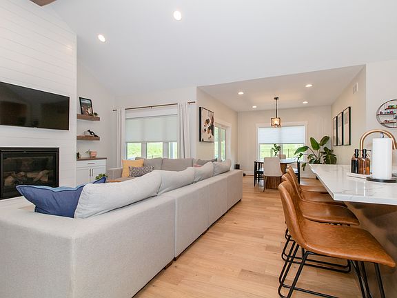 Beautiful ranch in Tri-Valley schools, better than new construction on a corner lot! This stunning 4 bed 3 bath home was built in 2022 and has all the bells and whistles you have been looking for, lots of upgrades! Beam vaulted ceilings in the great room/kitchen/primary suite and 9' ceilings everywhere else. Beautiful custom kitchen with a stylish backsplash, quartz tops, stainless appliances, and a walk in pantry. Dreamy primary suite with a big soaker tub, dual separate vanities, a custom tiled shower with barn door style glass doors, and a custom closet. Beautiful hardwood floors throughout most of the main floor. Stunning shiplap fireplace with built in storage and open shelving. Don't forget the gigantic living space in the basement featuring a wet bar with beautiful cabinets, quartz tops, and a full size stainless fridge. The basement also features a full bathroom and the 4th bedroom. Some other notable features and recent upgrades include; 2x6 exterior framing on the house, main floor laundry, two large storage rooms in basement, 3 car garage with ample storage space, radon mitigation system in place, metal fencing installed around the backyard in late 2022, upgraded lighting, upgraded to sod in the front and backyard when the home was finished being built, automatic blinds throughout in 2023, solid wood doors throughout, a sizeable covered porch right off the dining room, and beautiful landscaping surrounding the home. This light and airy open floor plan has so much to offer, come check it out before it's too late!