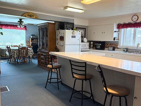 Welcome to your serene country retreat! This charming 4-bedroom, 1-bath home offers a perfect blend of comfort and nature. The spacious kitchen features a large eat-on bar, ideal for casual dining or entertaining. Enjoy family meals in the dining room, complete with a large picture window that frames breathtaking views of your expansive 8-acre property.