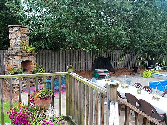 5 bedroom, 2 full baths, and a 3/4 bath, on a large lot with pool (with removable pool fence and cover), basketball pad, outdoor fireplace, and mature thornless blackberries, storage shed and 2 car garage. Kitchen is tiled with hand painted Italian medallions as accent, granite counters, tile backsplash, breakfast bay overlooking deck and pool. Living room and dining room with great windows, family room with gas logs, 3/4 bath down, hardwood throughout main floor. Hardwood stairs and hallway upstairs, master with large bath and closet, 4 more bedrooms, huge family room, another full bath, great storage, pull down attic.