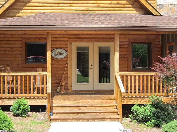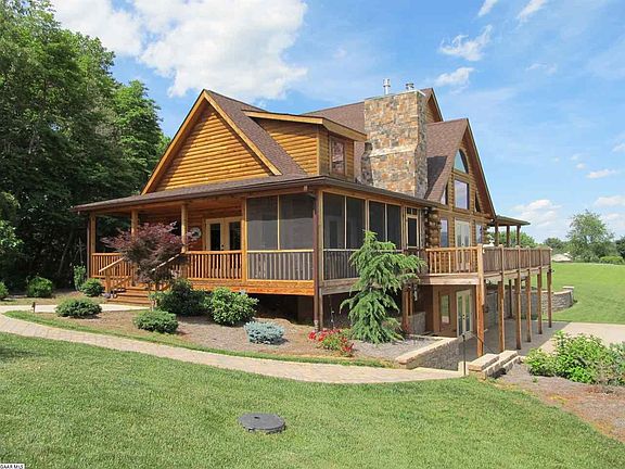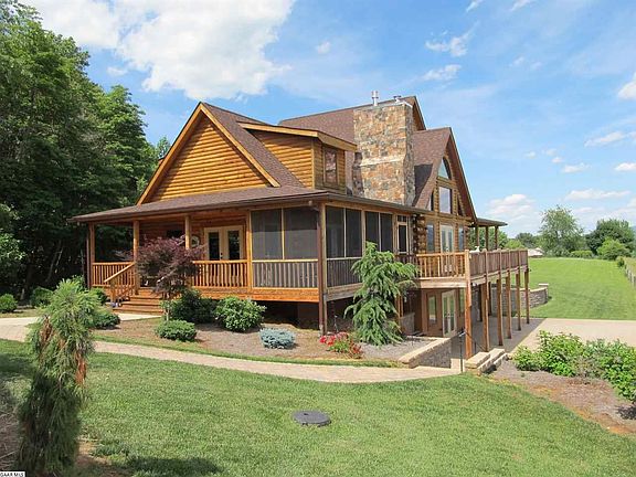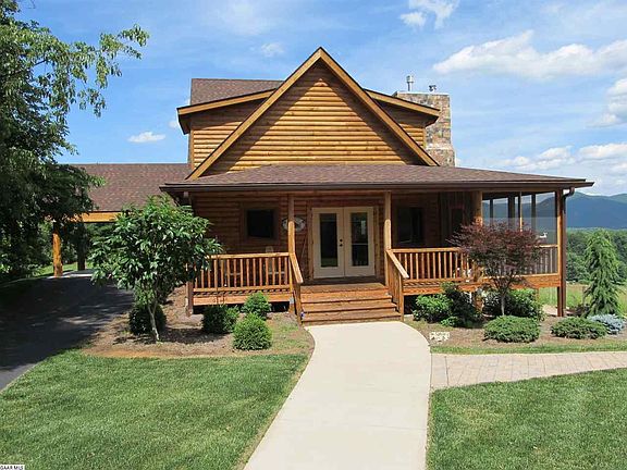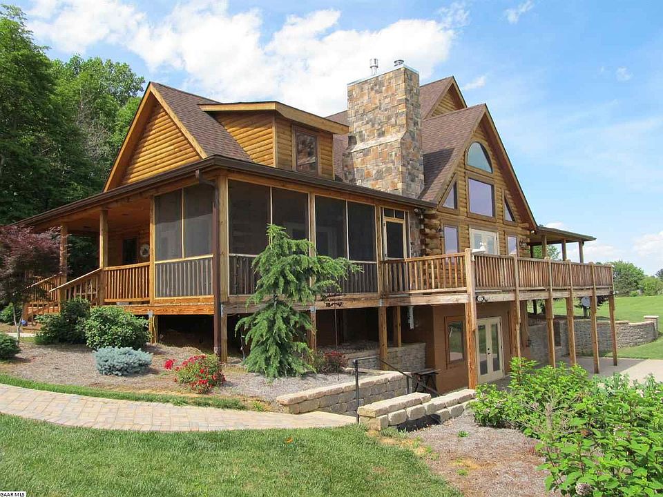Spacious log home with amazing views. This home has it all - open floor plan featuring great room w/large windows to enjoy the mountain views, spacious kitchen - dining combo with hickory cabinetry & granite countertops, stainless appliances, copper farm sink, main level MBR w/master bath, and more. Two BR & Baths on second level and 2 additional BR w/ full bath & family room on lower level. Deck and screened porch w/fireplace for entertaining. Large 2 car detached garage w/covered porch for additional entertaining space. Landscaping is terrific - walk-ways, patios, retaining walls, & more. So much attention to detail - this is a must see.
