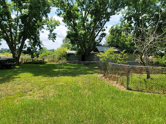 Cozy house with 2 bedroom and 1 bath on almost 4 acres with 2 fish ponds and stables for 3-4 horses. Property has chain link fence around entire corner lot with multiple ways to access. Also14 mature pecan trees along with other landscaping.